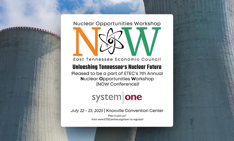 System One is excited to be part of the East Tennessee Economic Council (ETEC) 2025 Nuclear Opportunities Workshop (NOW), Tennessee’s premier nuclear industry conference focused on all things nuclear: fission, fusion, isotopes, environmental management, AI in nuclear, workforce, and more.